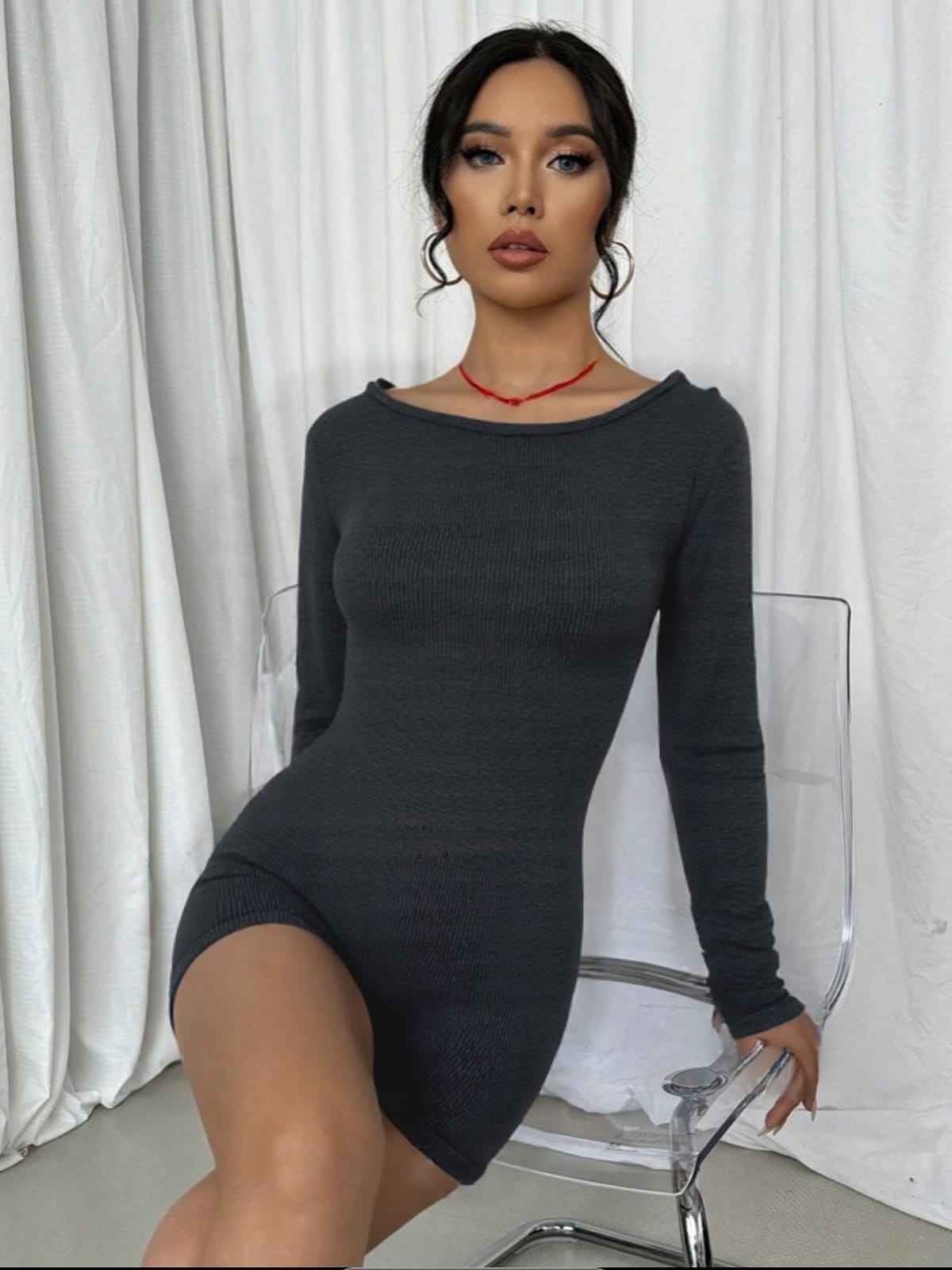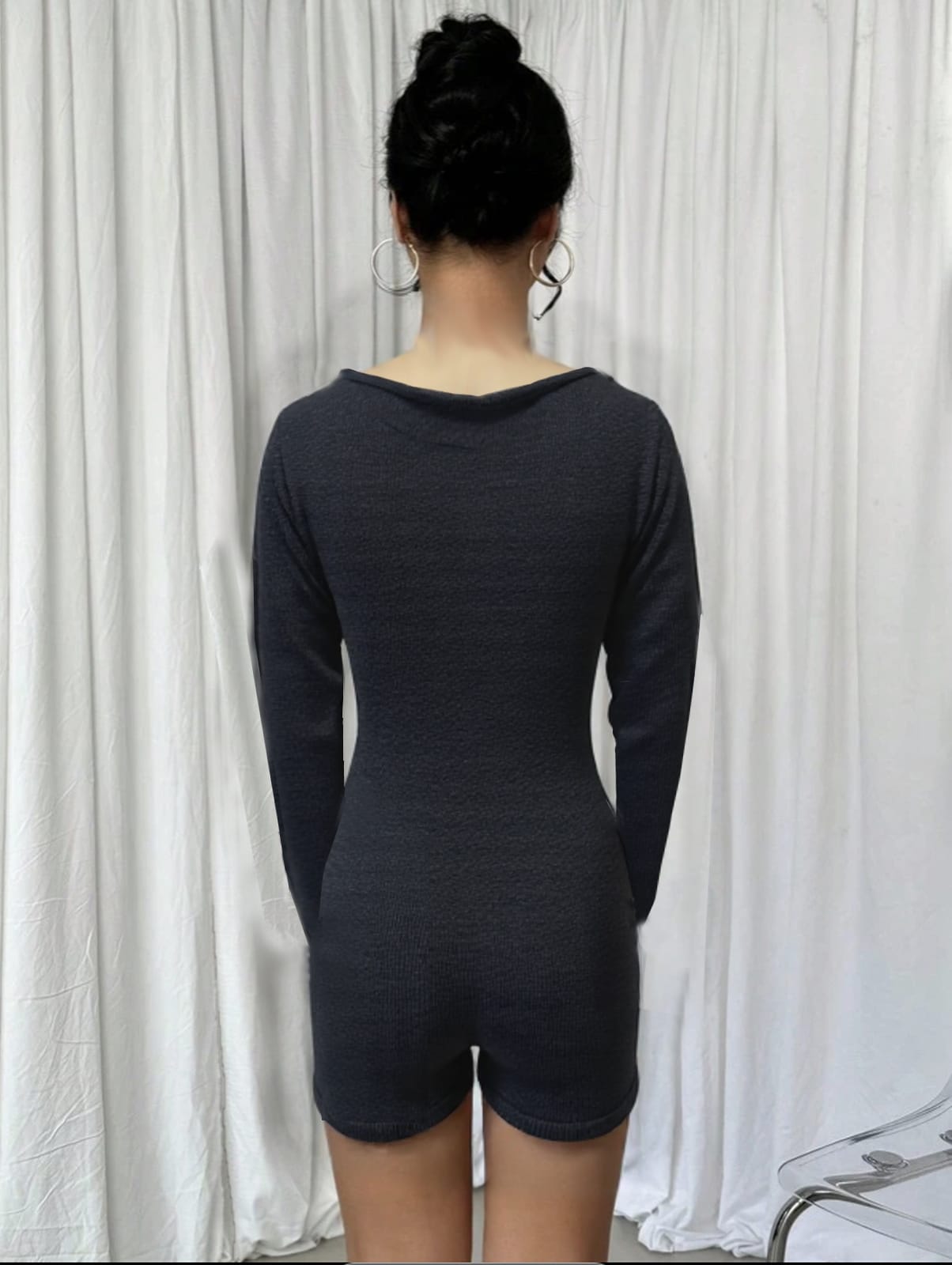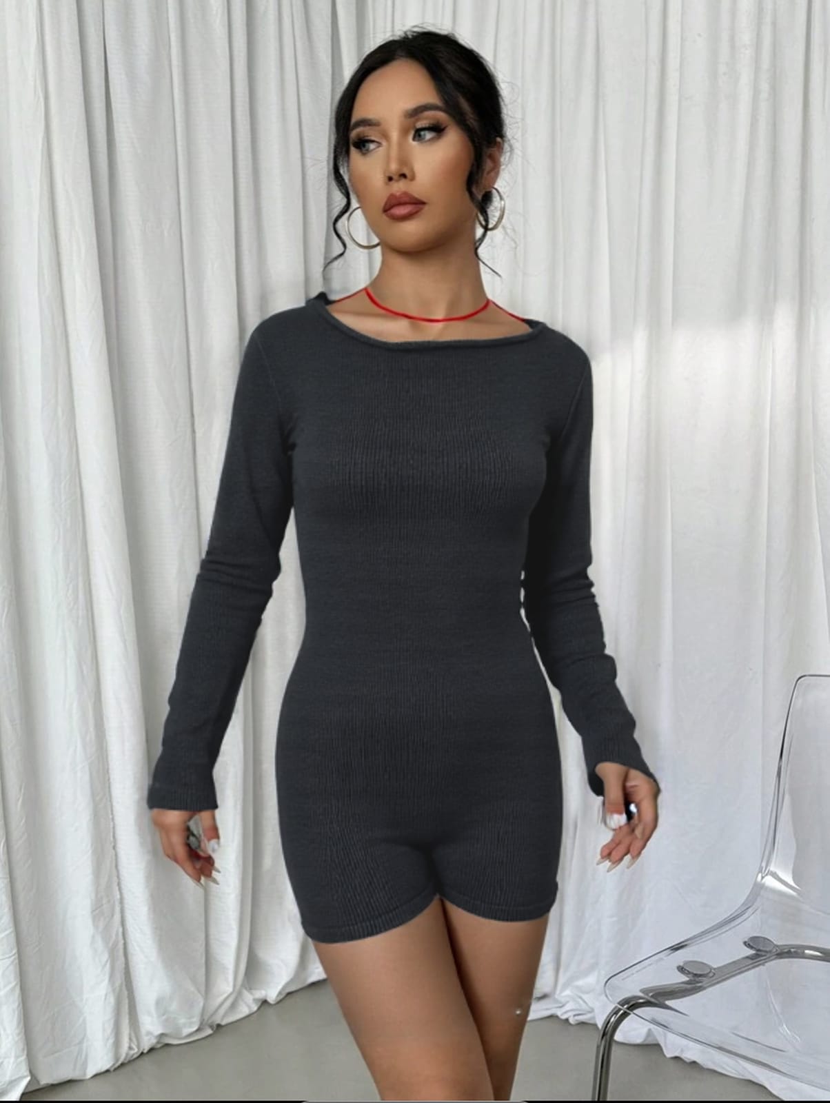 Women’s boat neck long sleeve woolen jumpsuit shorts